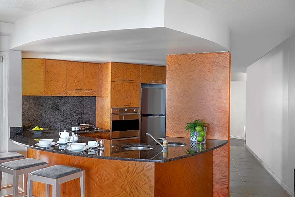 2 Bedroom is 893 square feet and includes either a queen-size bed 150-154 width or 2 single beds 80-130 width plus living room, balcony, hairdryer, and ironing set.